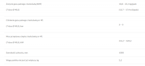 Może również pracować na gazie ziemnym przy ciśnieniu 2–2,5 bar bez tlenu